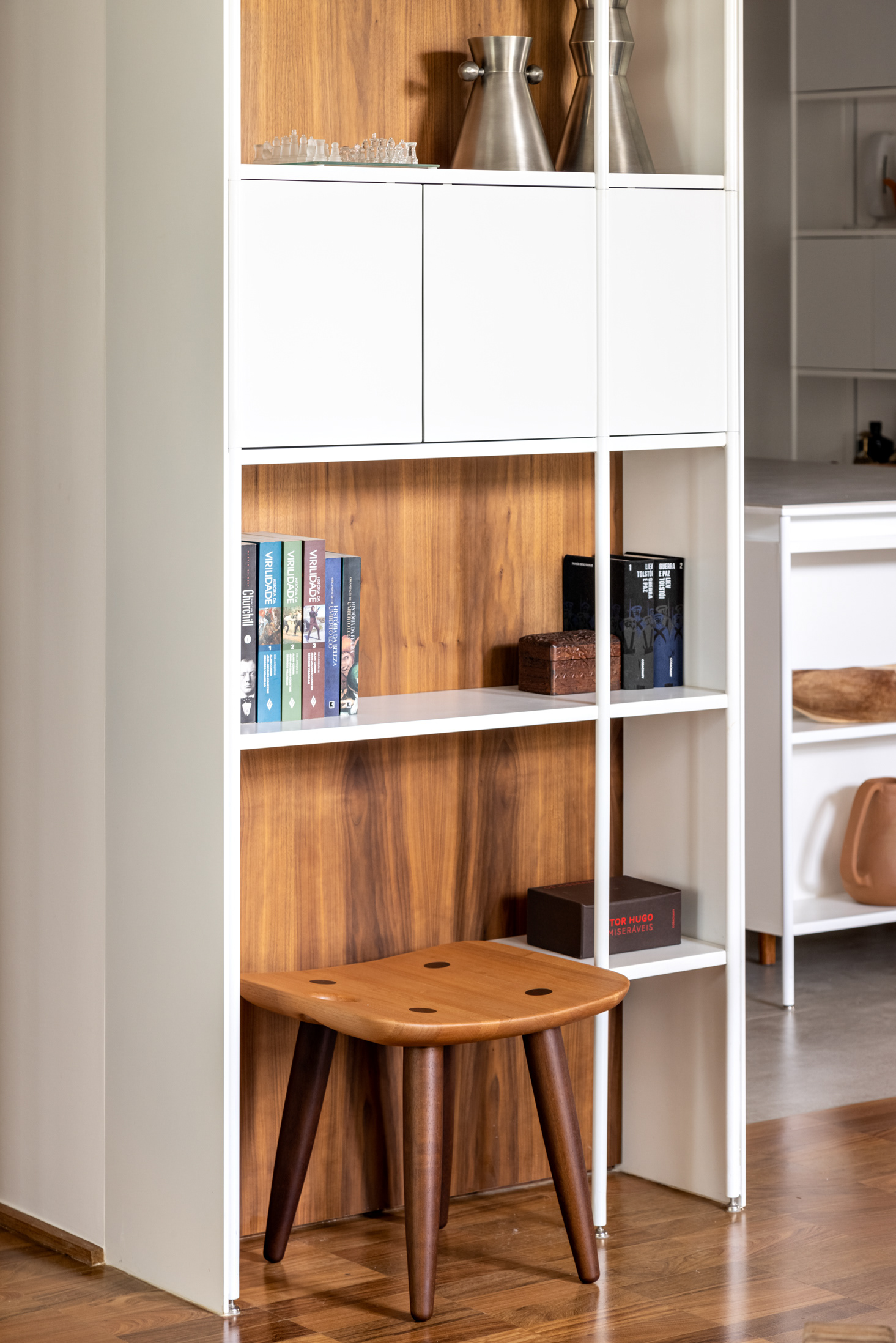 The project for this apartment, located in the Higienópolis neighborhood in São Paulo, sought to update the space from the perspective of finishes and internal organization, while at the same time recognizing the qualities of the original floor plan of this interesting building from the '60s.