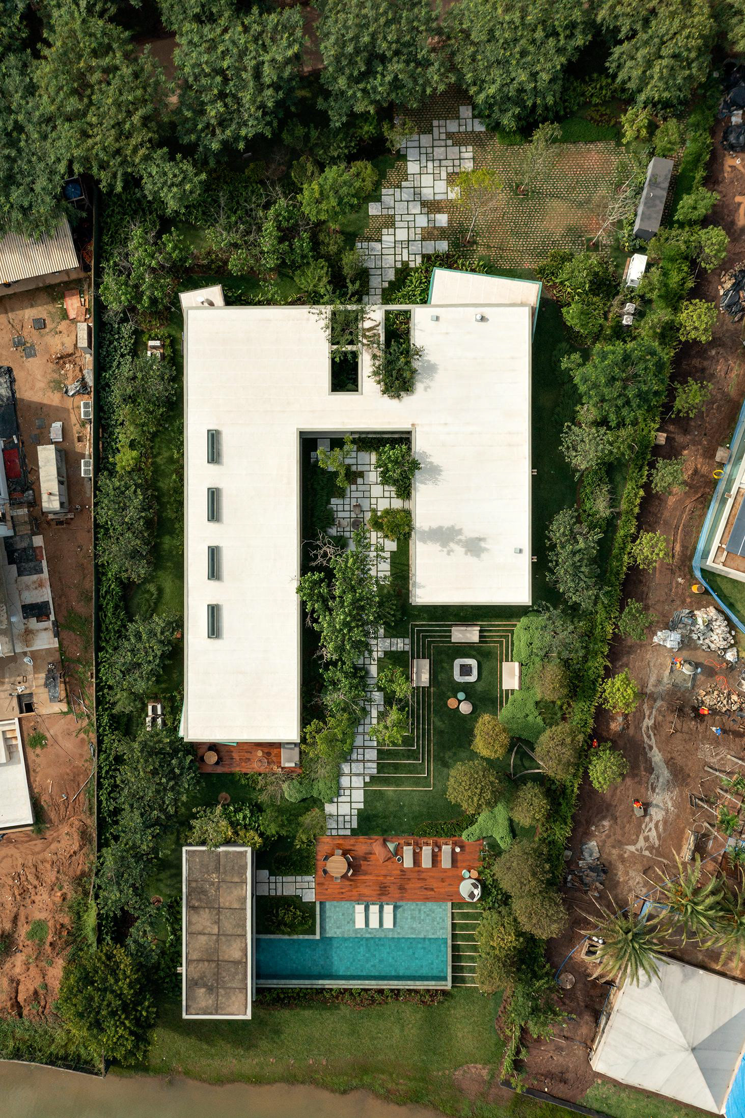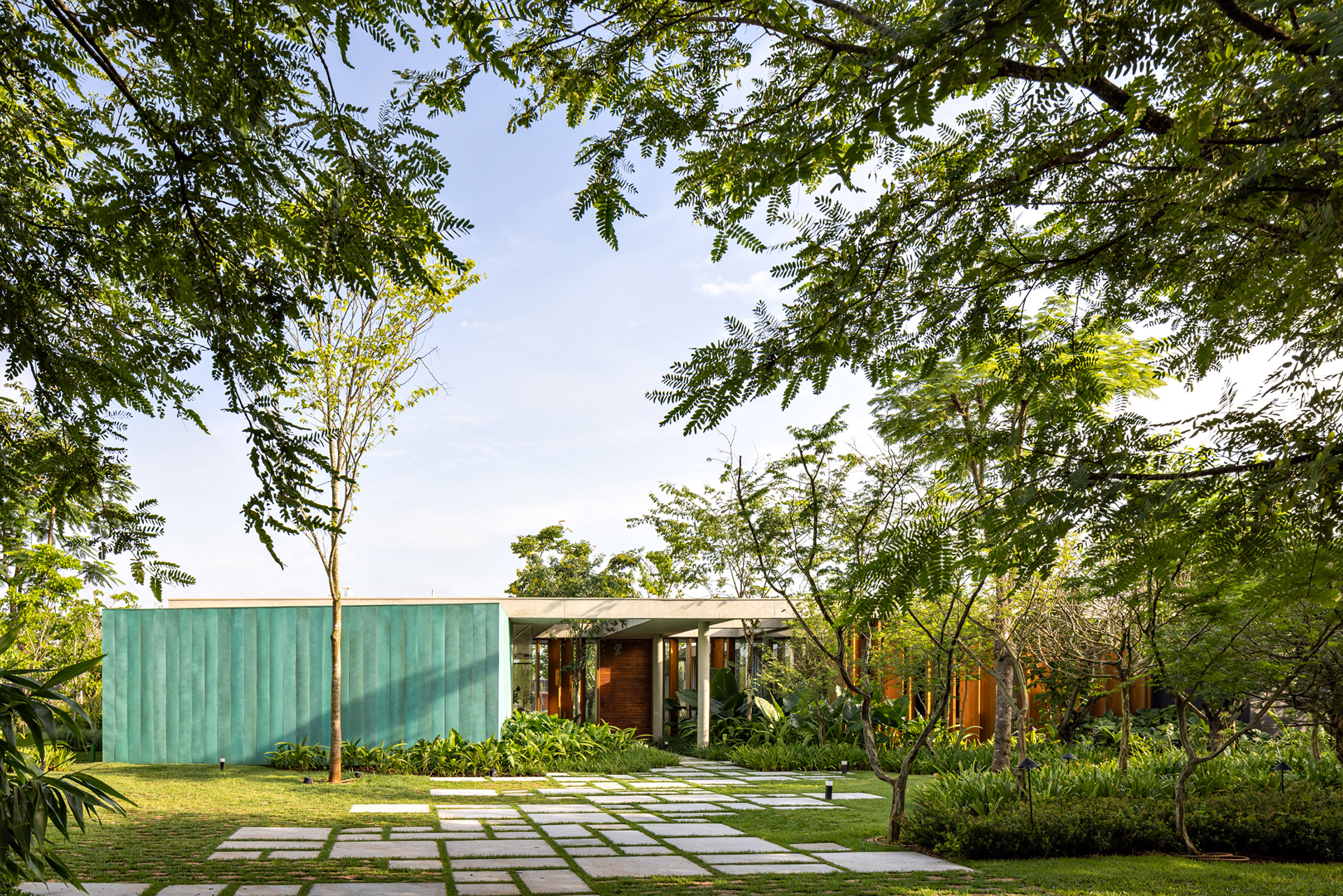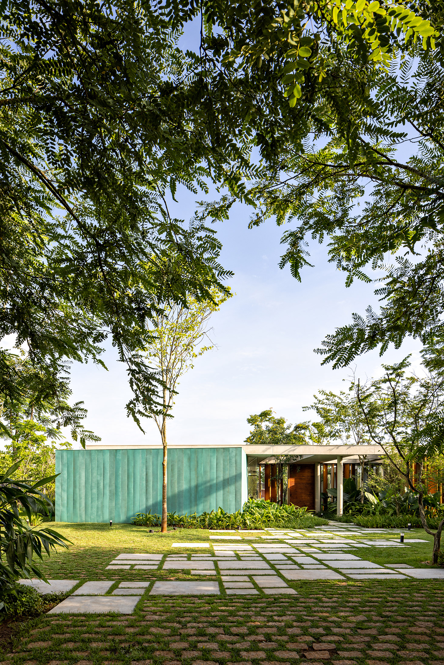 The house is very well connected to the gardens, designed by landscaper Alex Hanazaki. The flooring is very impressive, with concrete slabs of different shapes and sizes, as well as lush vegetation made up of pata-de-vaca (Brazilian orchid tree), jabuticaba (Brazilian grapetree) trees and other species.