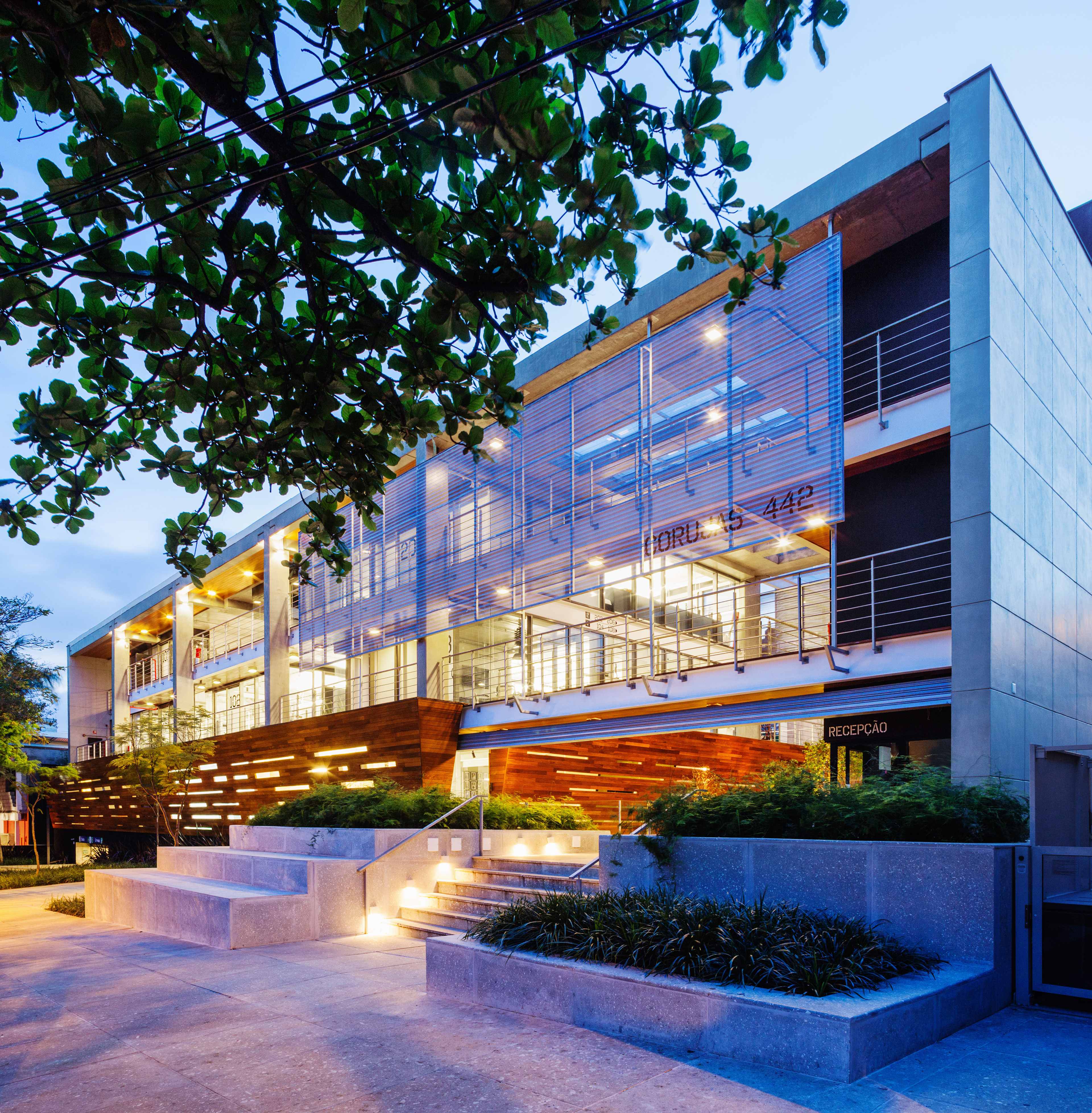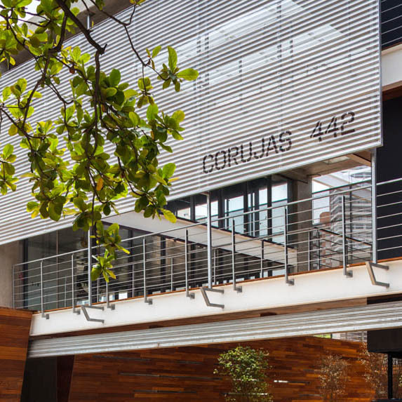 Corujas building, located in Vila Madalena, is a building of offices of several sizes and shapes. The proposal for this structure is creating a more humanized space for work, going in the opposite direction to the traditional mirrored glass cubes located in regions of São Paulo, such as Faria Lima or Berrini Avenues.