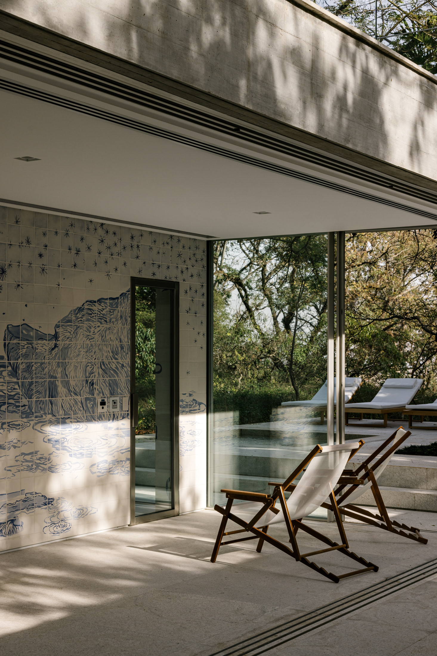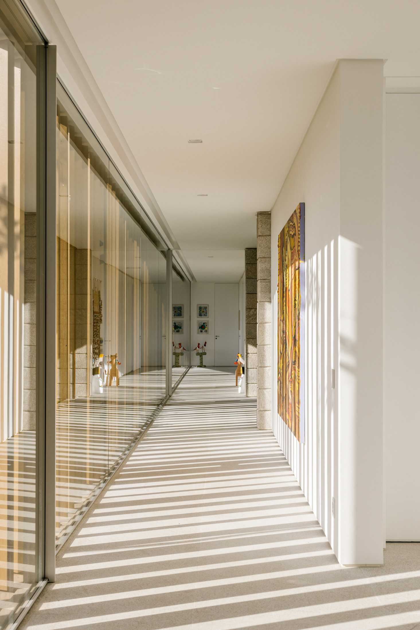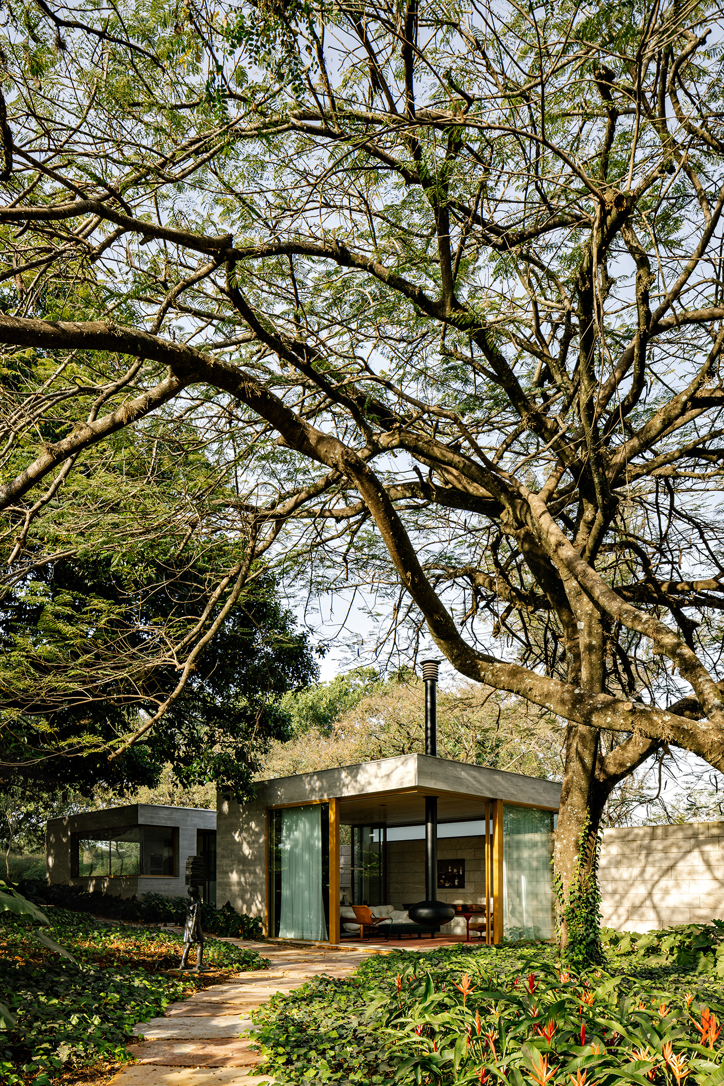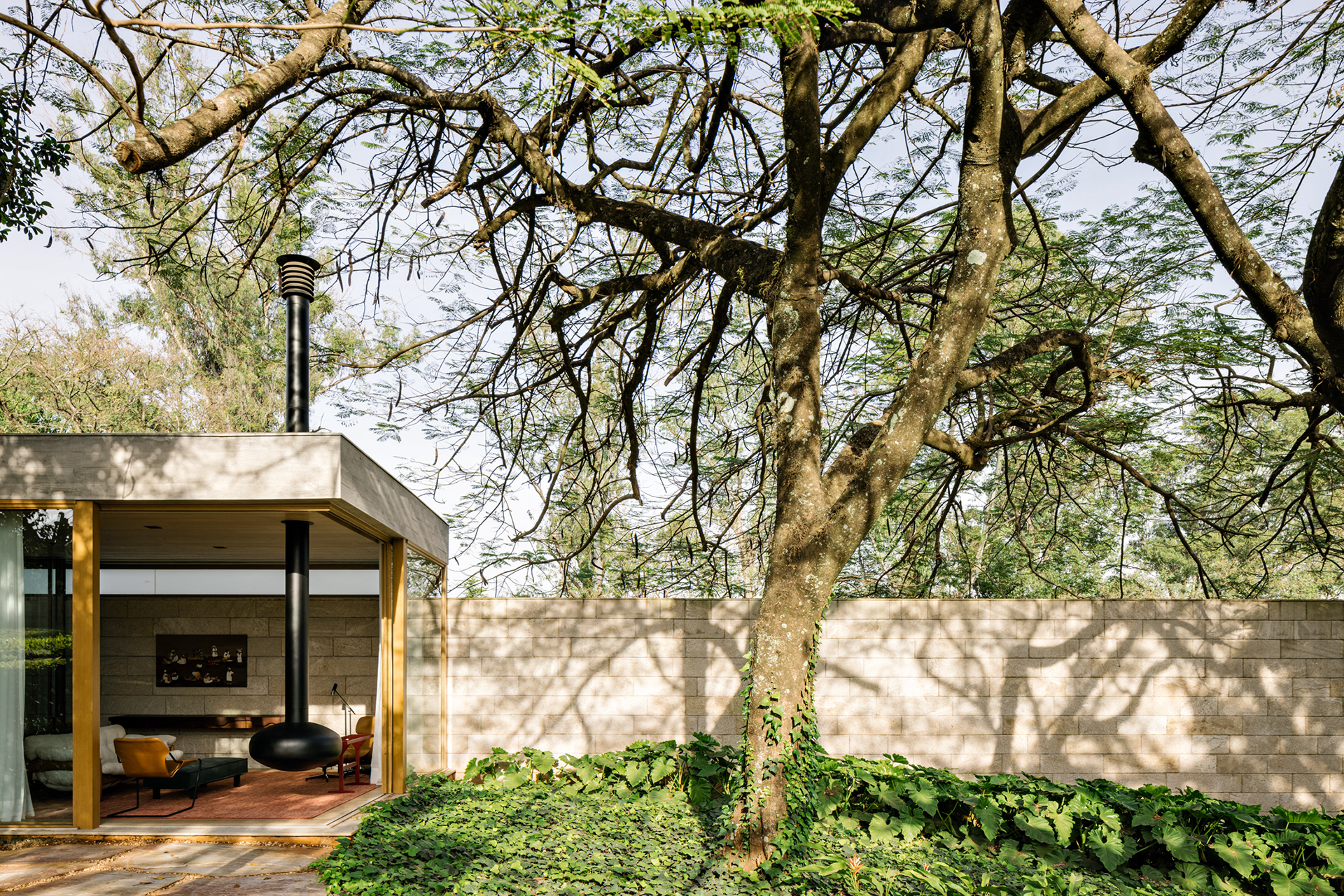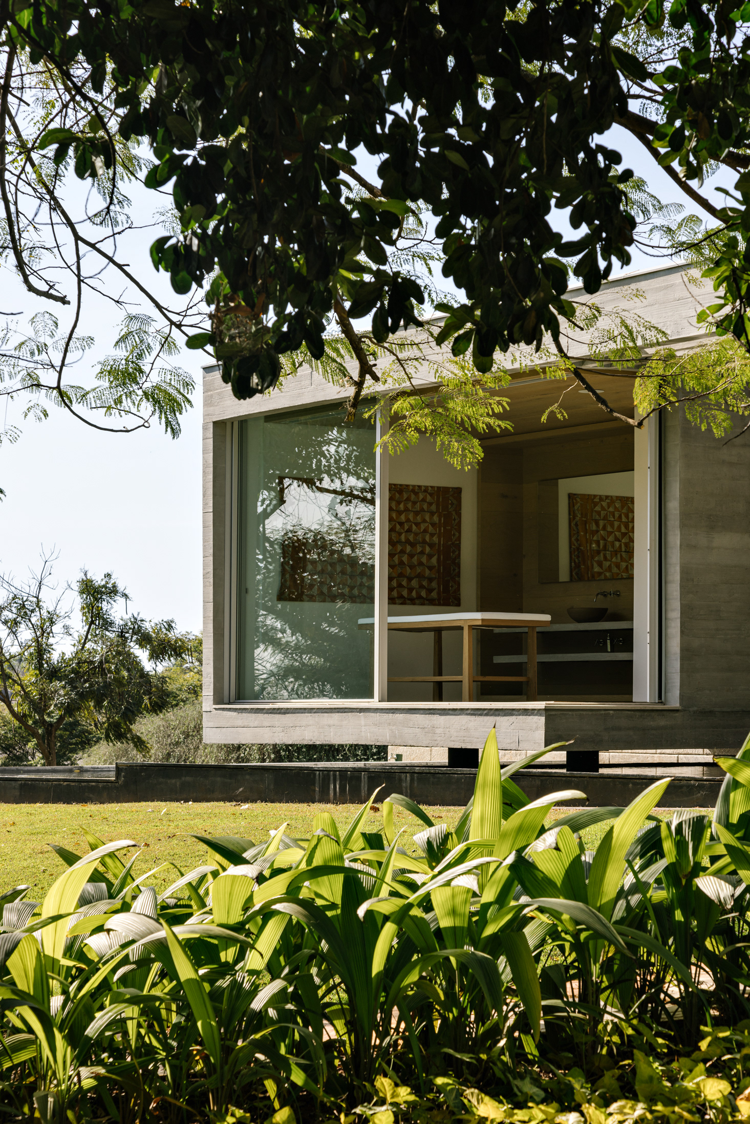 The continuity between the internal and external spaces, characterized by the existence of several planes that organize the object and the landscape, reinforces the existence of patios of different sizes, where large sculptures demonstrate the clients appreciation for Brazilian art - also seen inside the house.