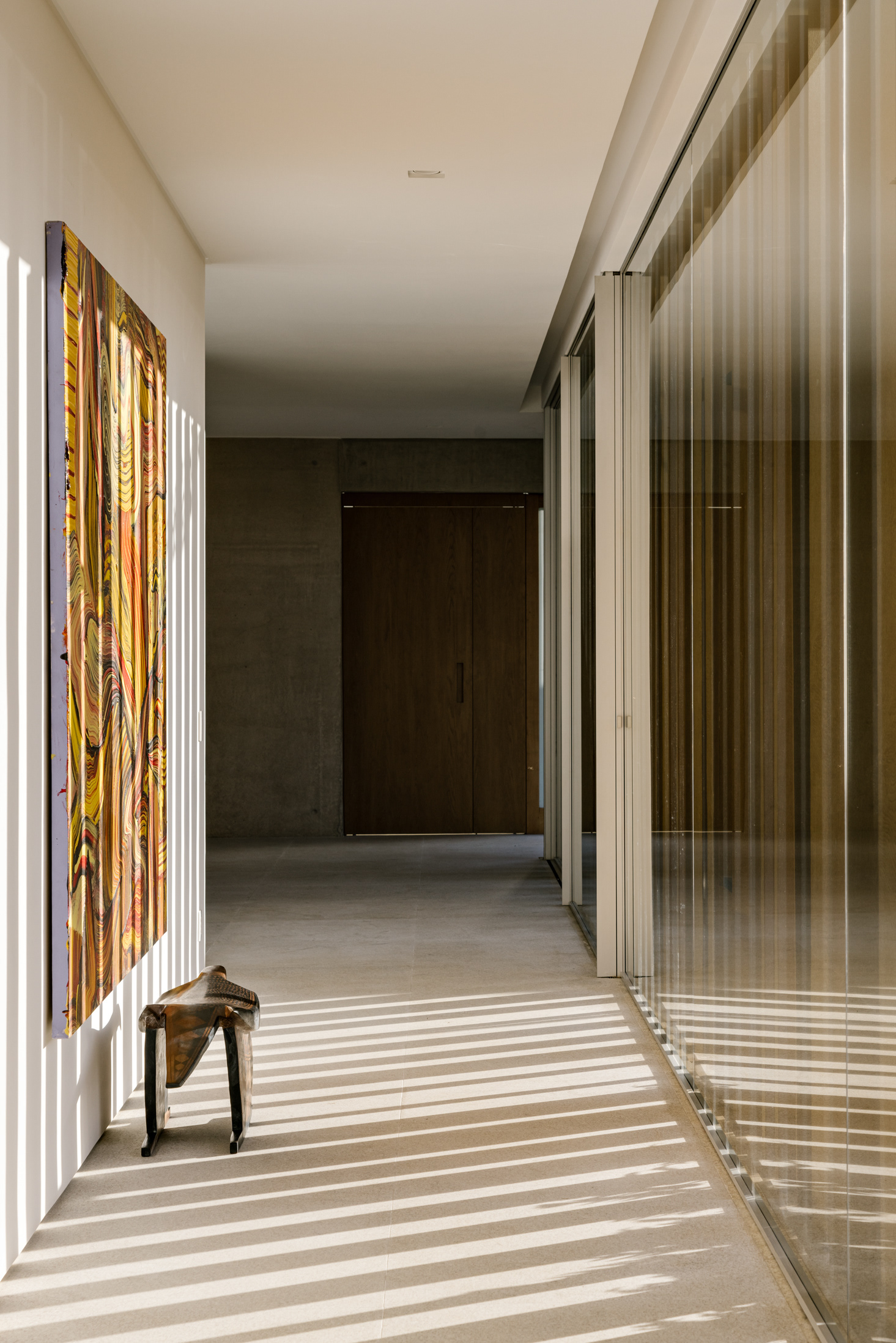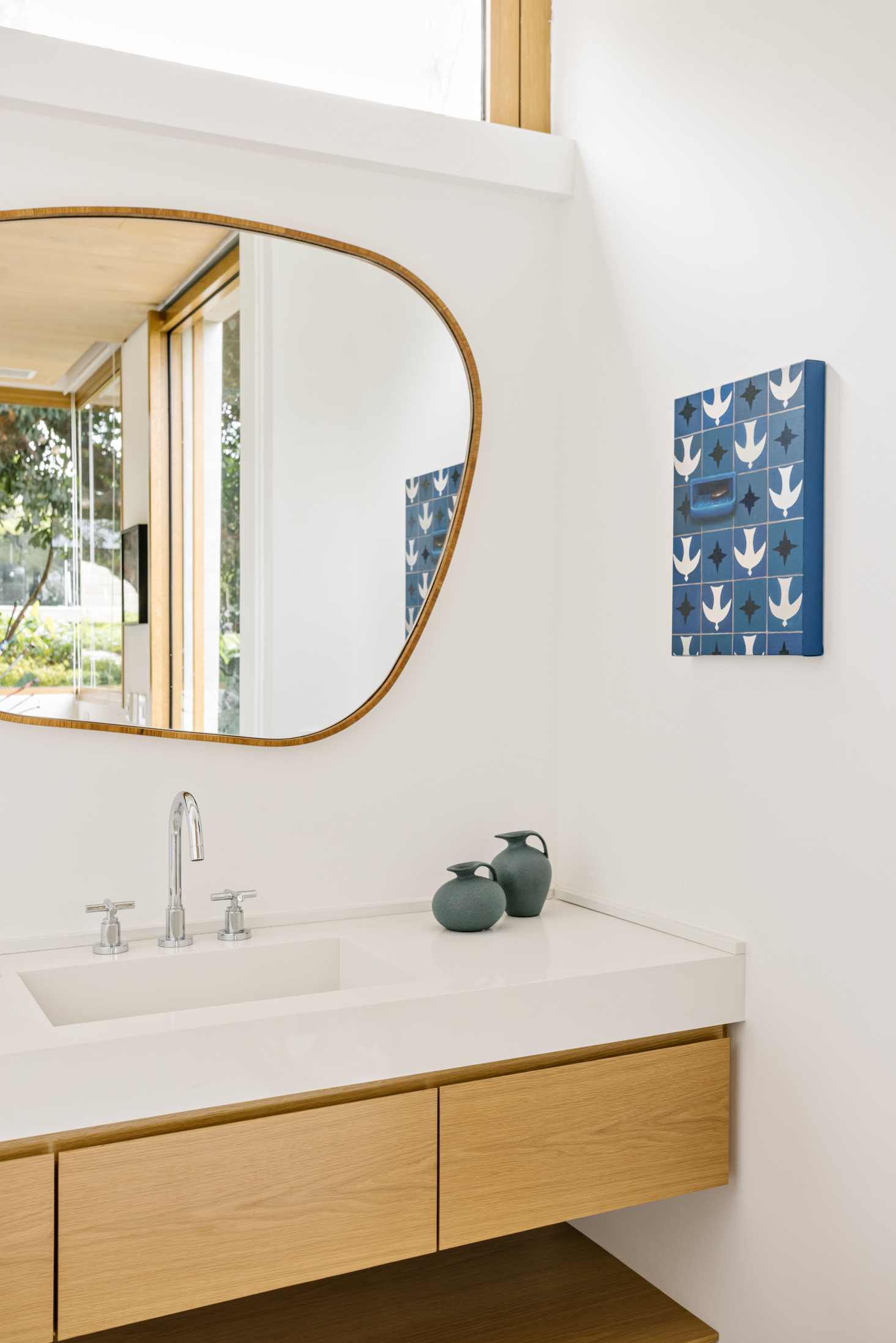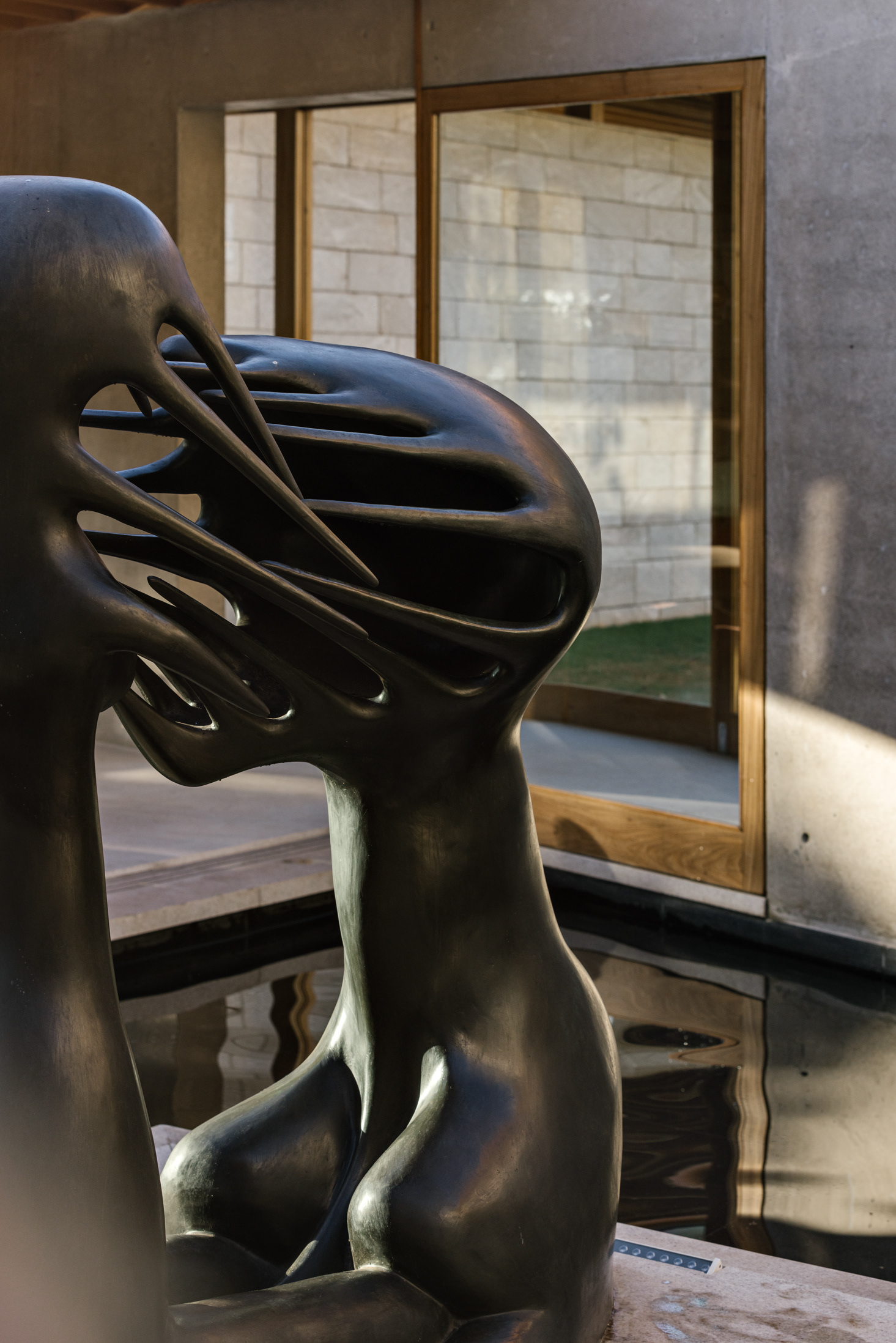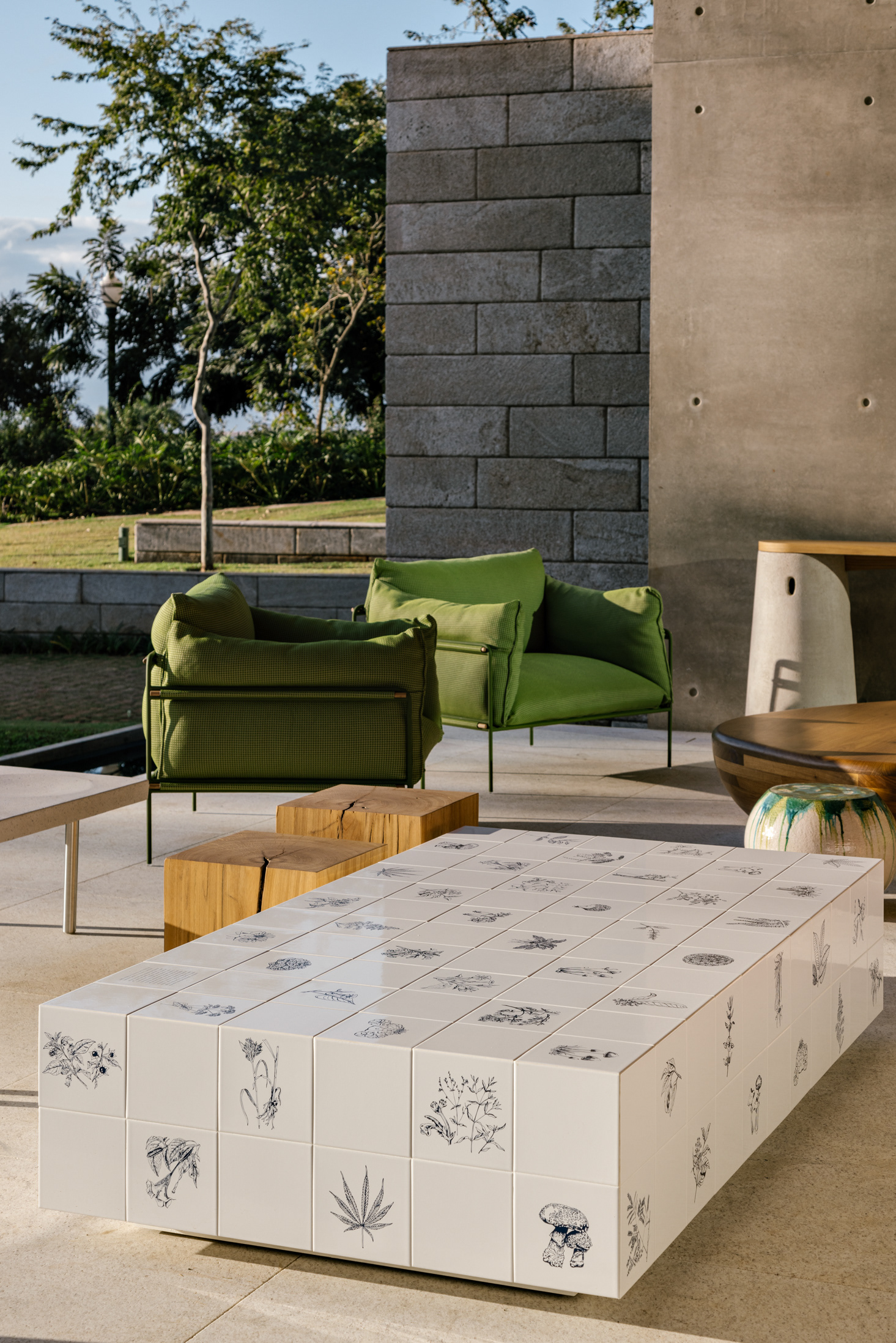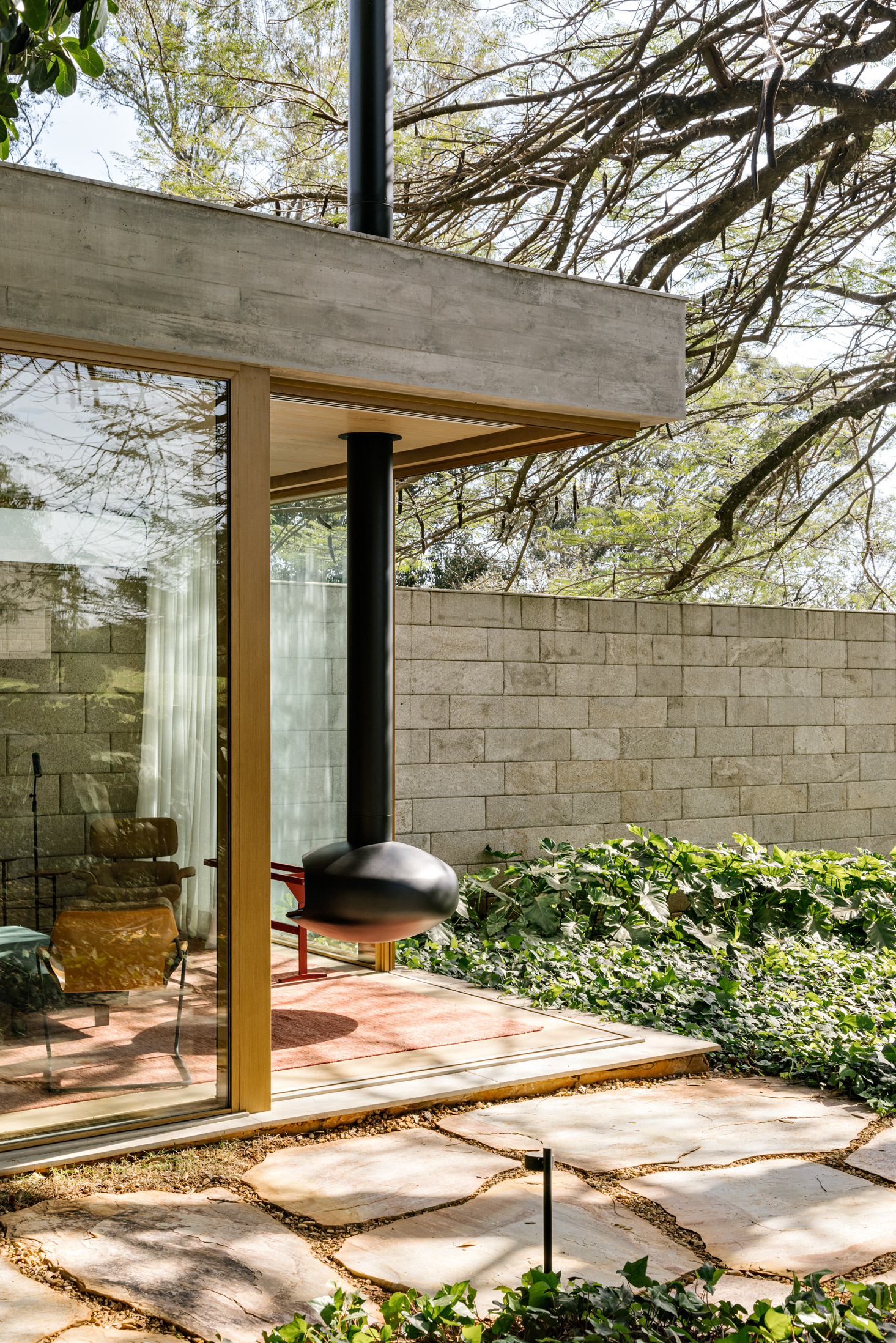 The continuity between the internal and external spaces, characterized by the existence of several planes that organize the object and the landscape, reinforces the existence of patios of different sizes, where large sculptures demonstrate the clients appreciation for Brazilian art - also seen inside the house.