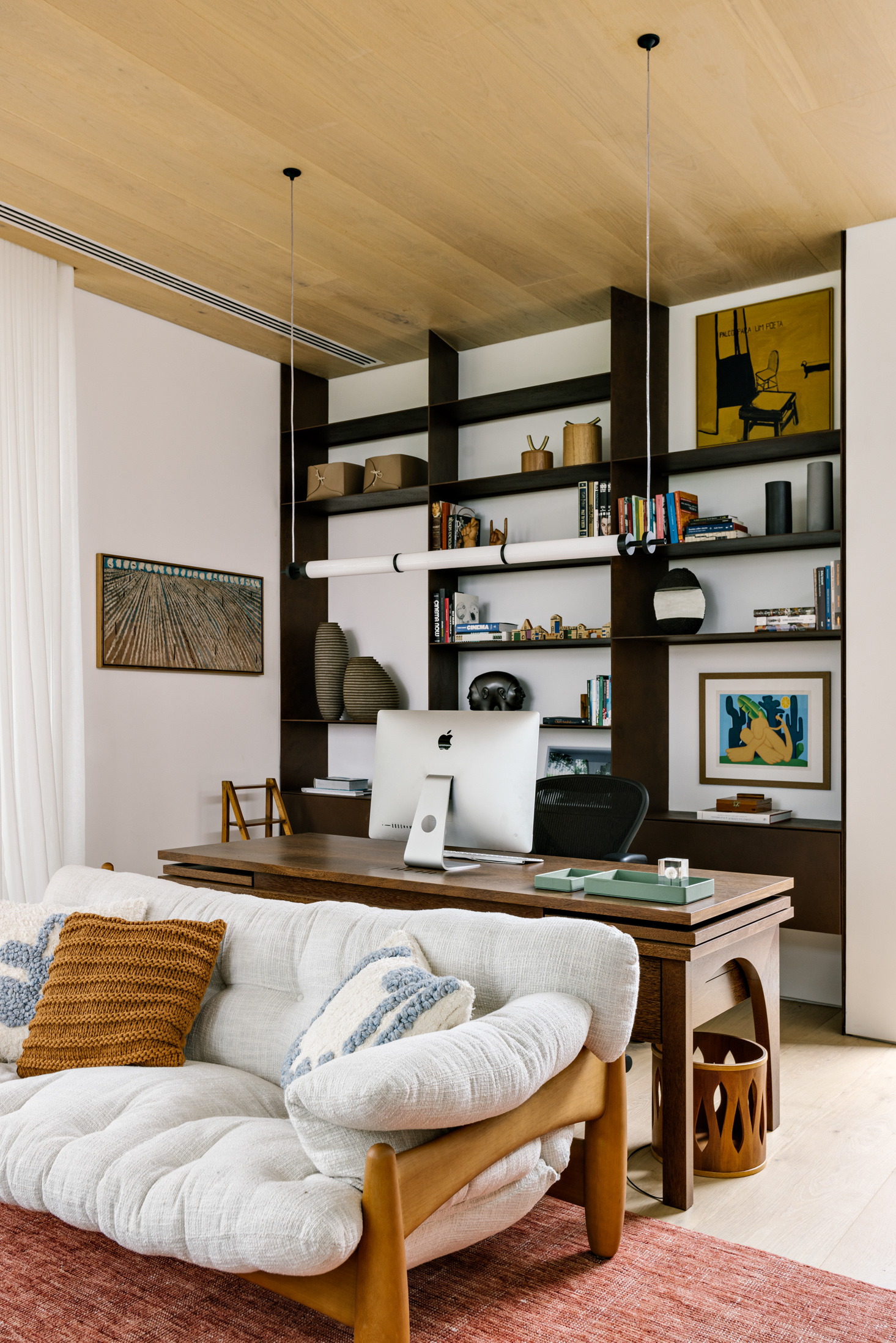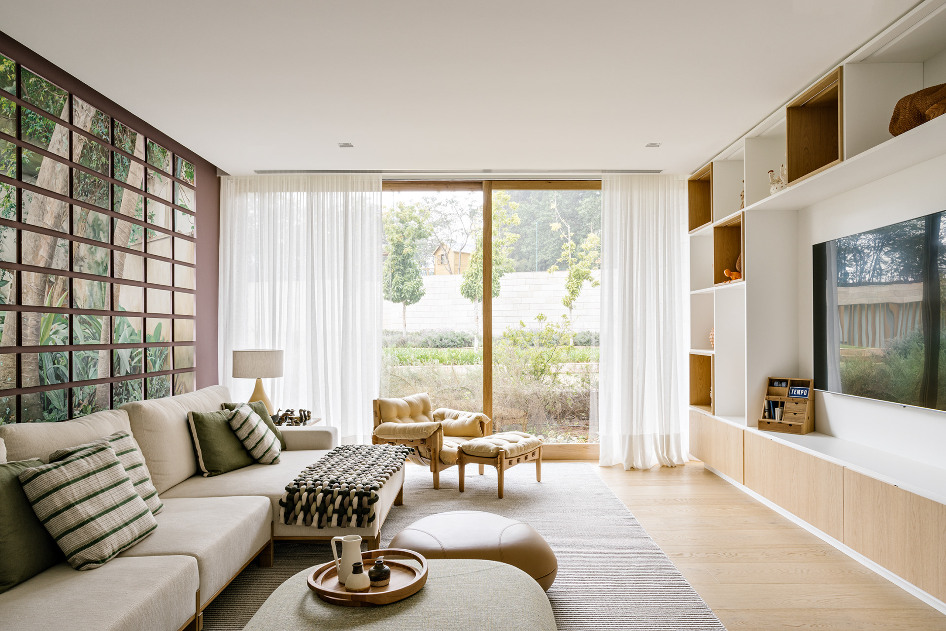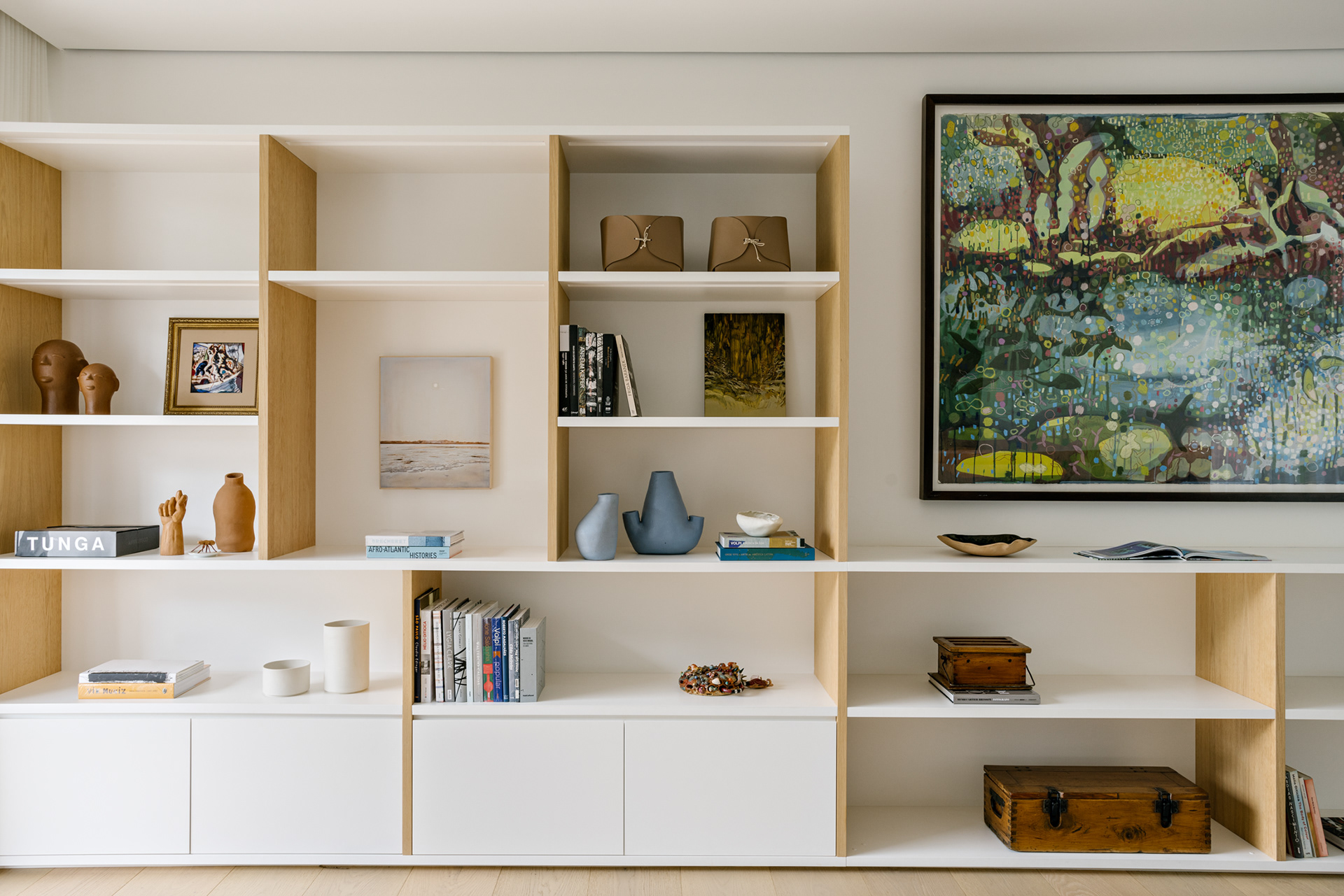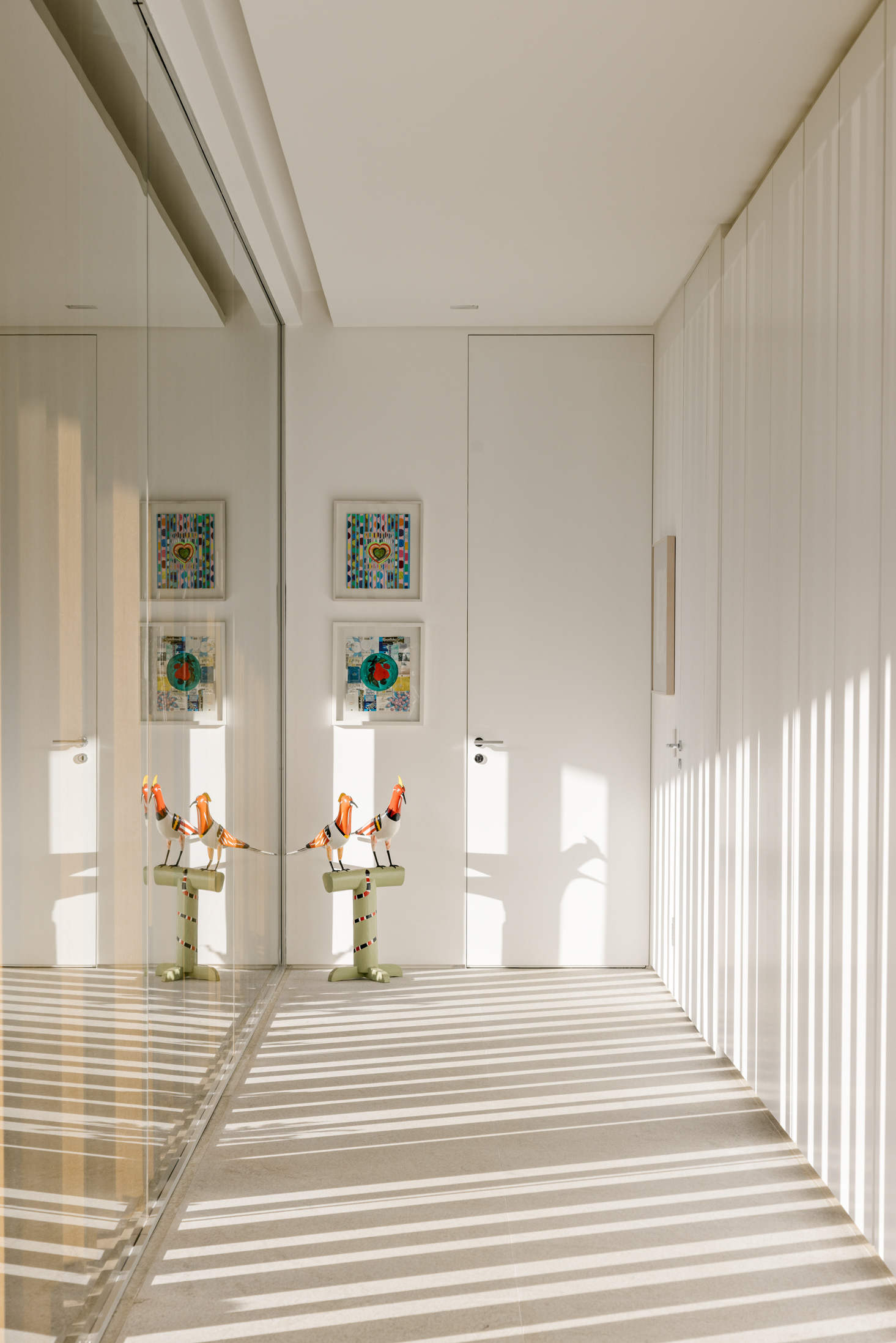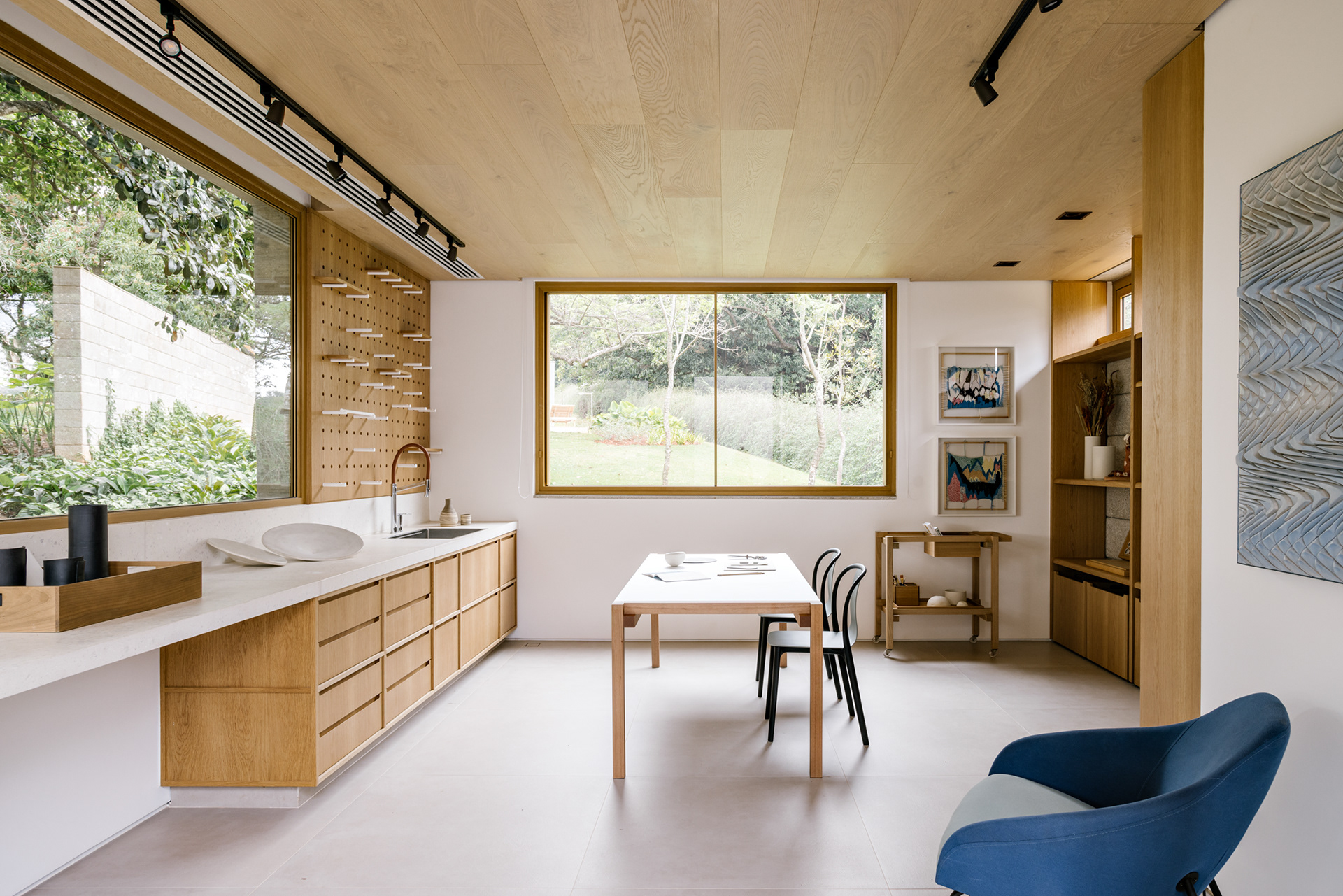 The continuity between the internal and external spaces, characterized by the existence of several planes that organize the object and the landscape, reinforces the existence of patios of different sizes, where large sculptures demonstrate the clients appreciation for Brazilian art - also seen inside the house.
