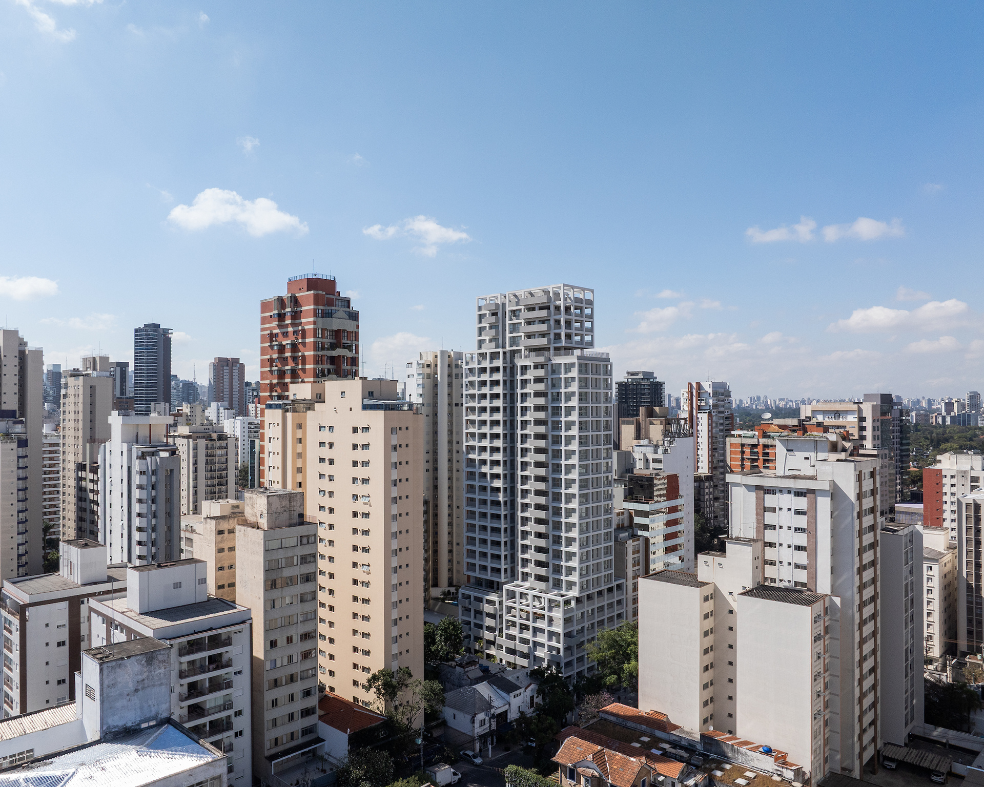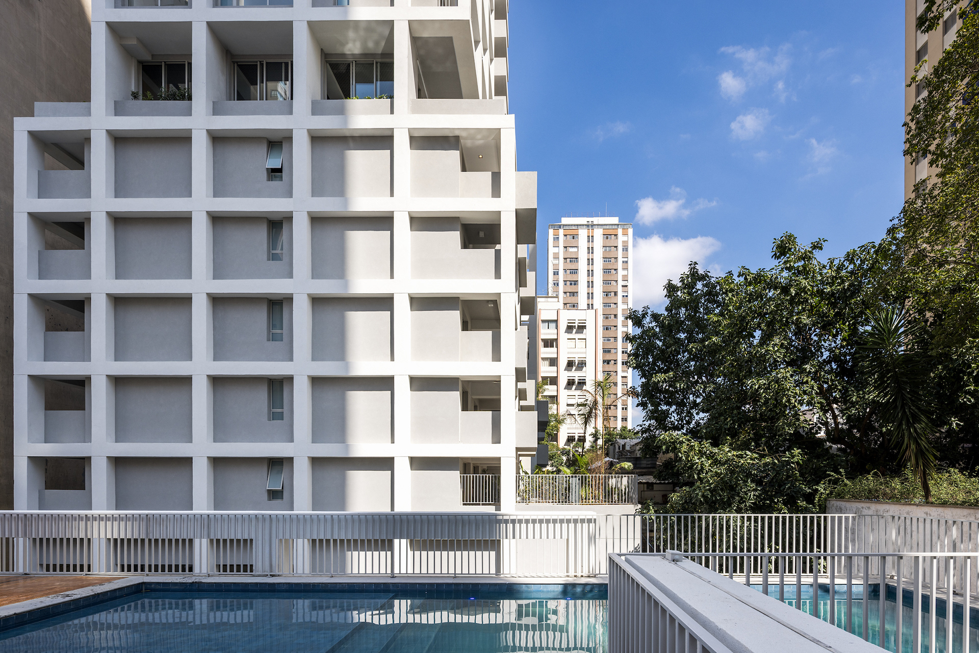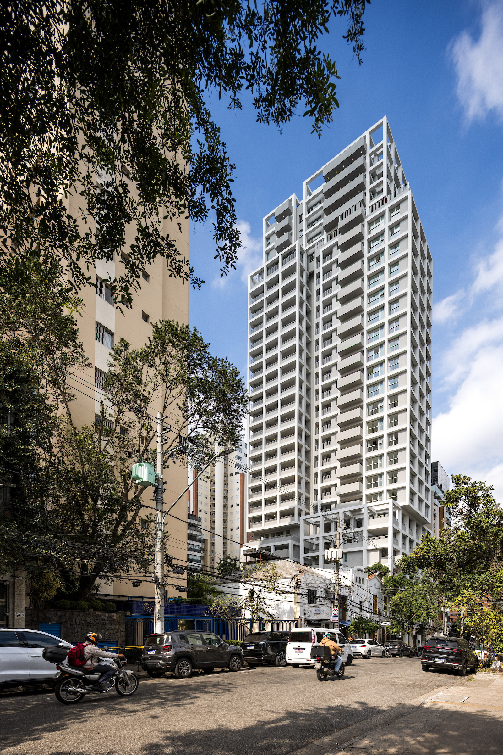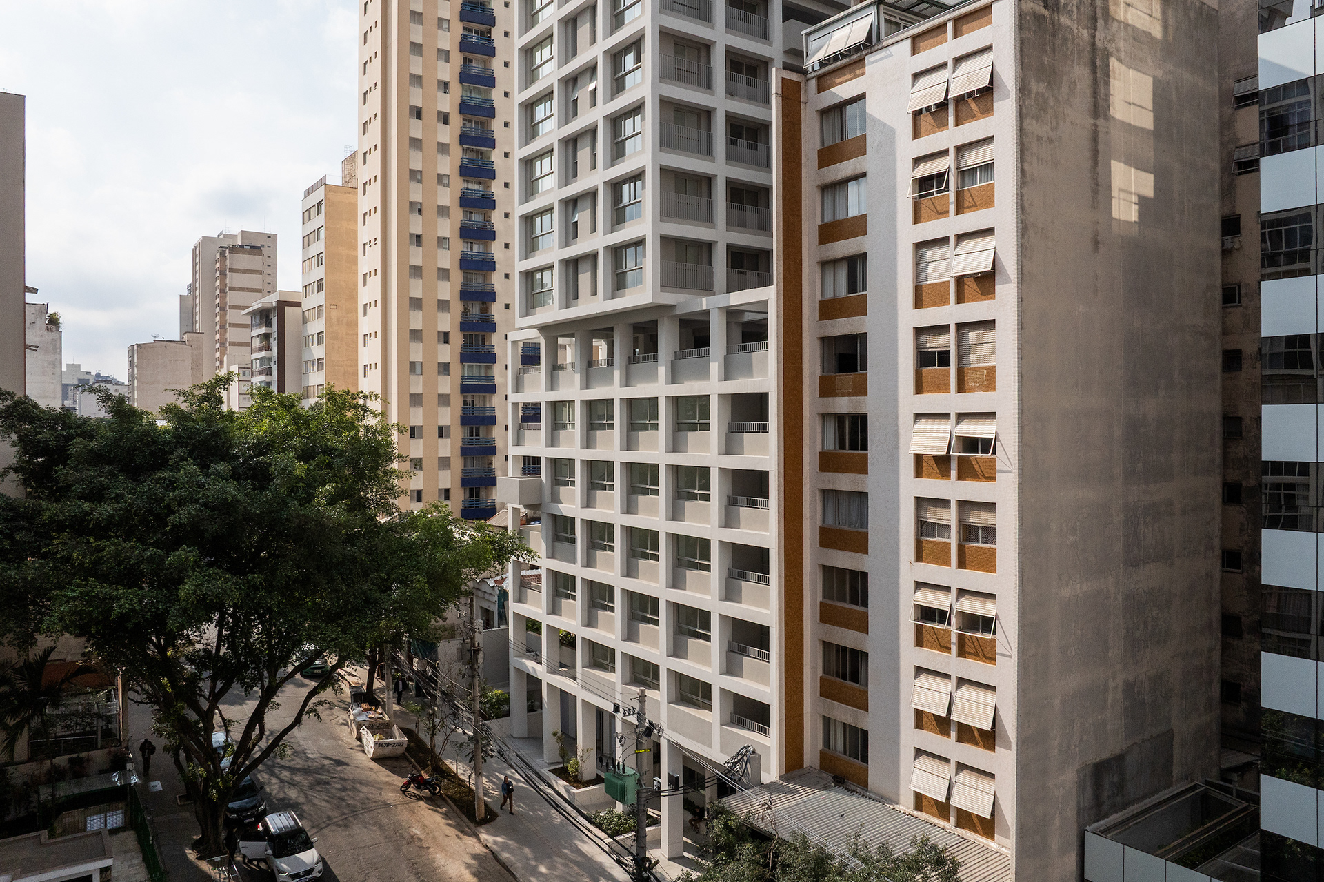 The choice of light, neutral colors—such as white and gray—reinforces the role of light and shadow in articulating the grid and the volumes. These tones also emphasize the presence of vegetation wherever possible, especially where the grid creates transitional outdoor spaces, with planters that are simultaneously within the structure and exposed to the elements. The purity of white, combined with the rigor of the structure, results in a direct, synthetic, and clear urban object, free of excess. In an urban landscape as complex as São Paulo’s, it is sometimes important to speak softly—to whisper.