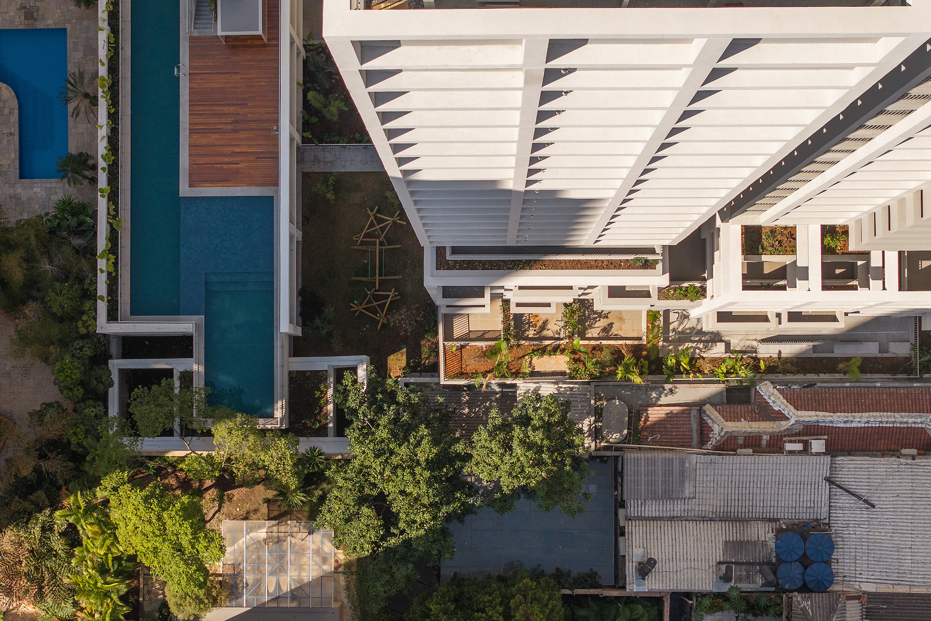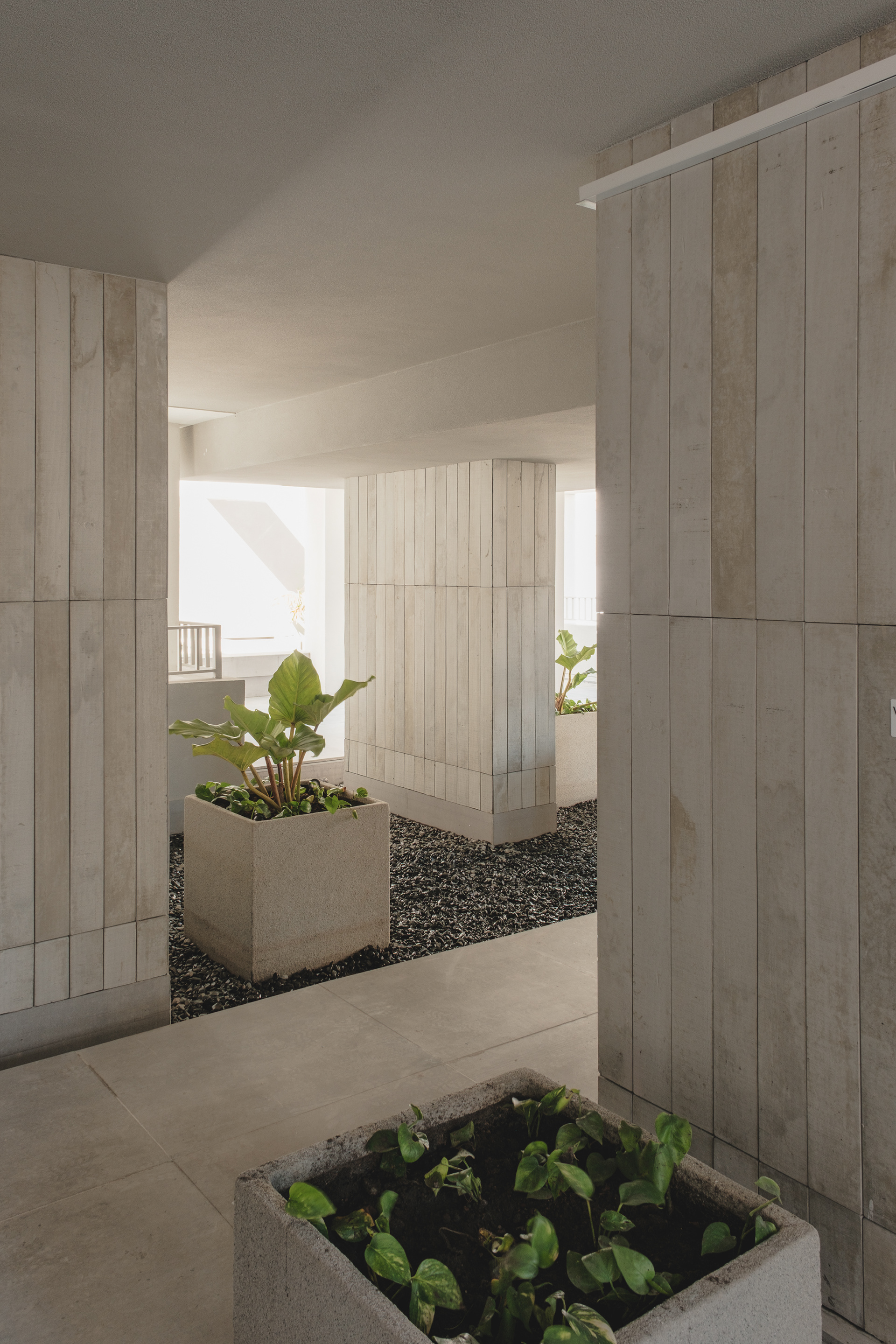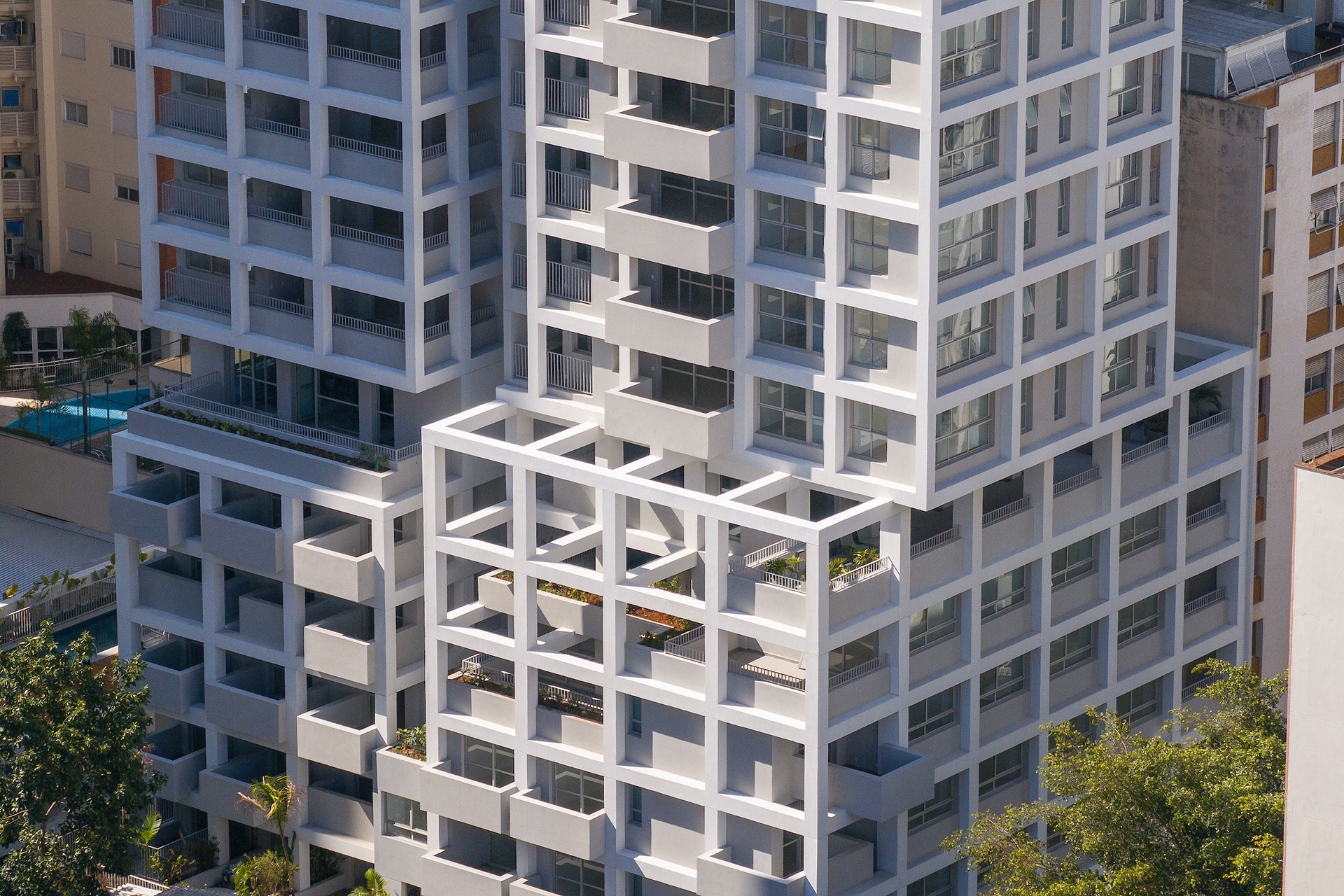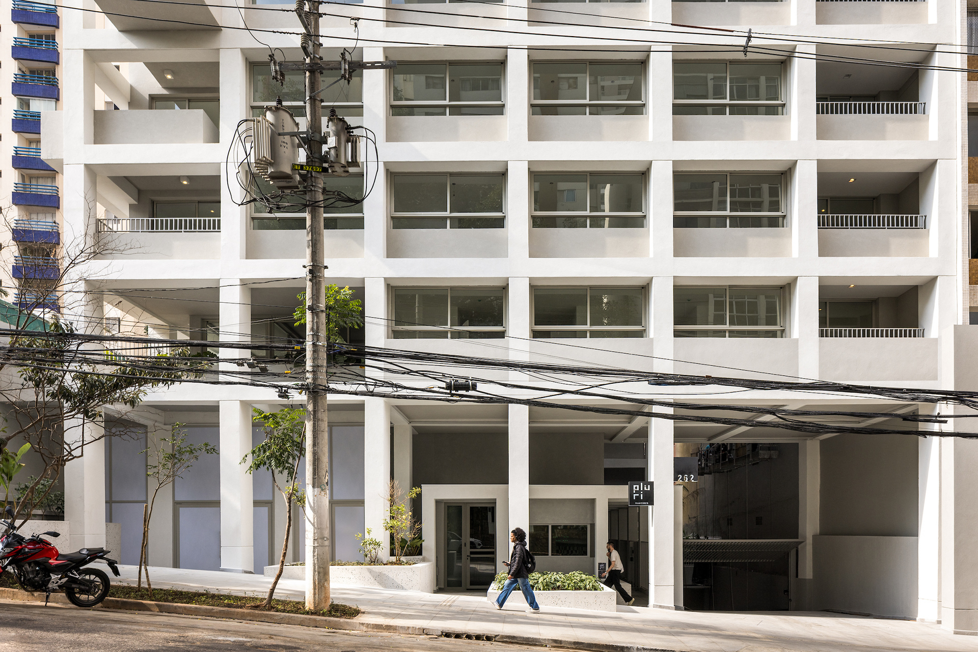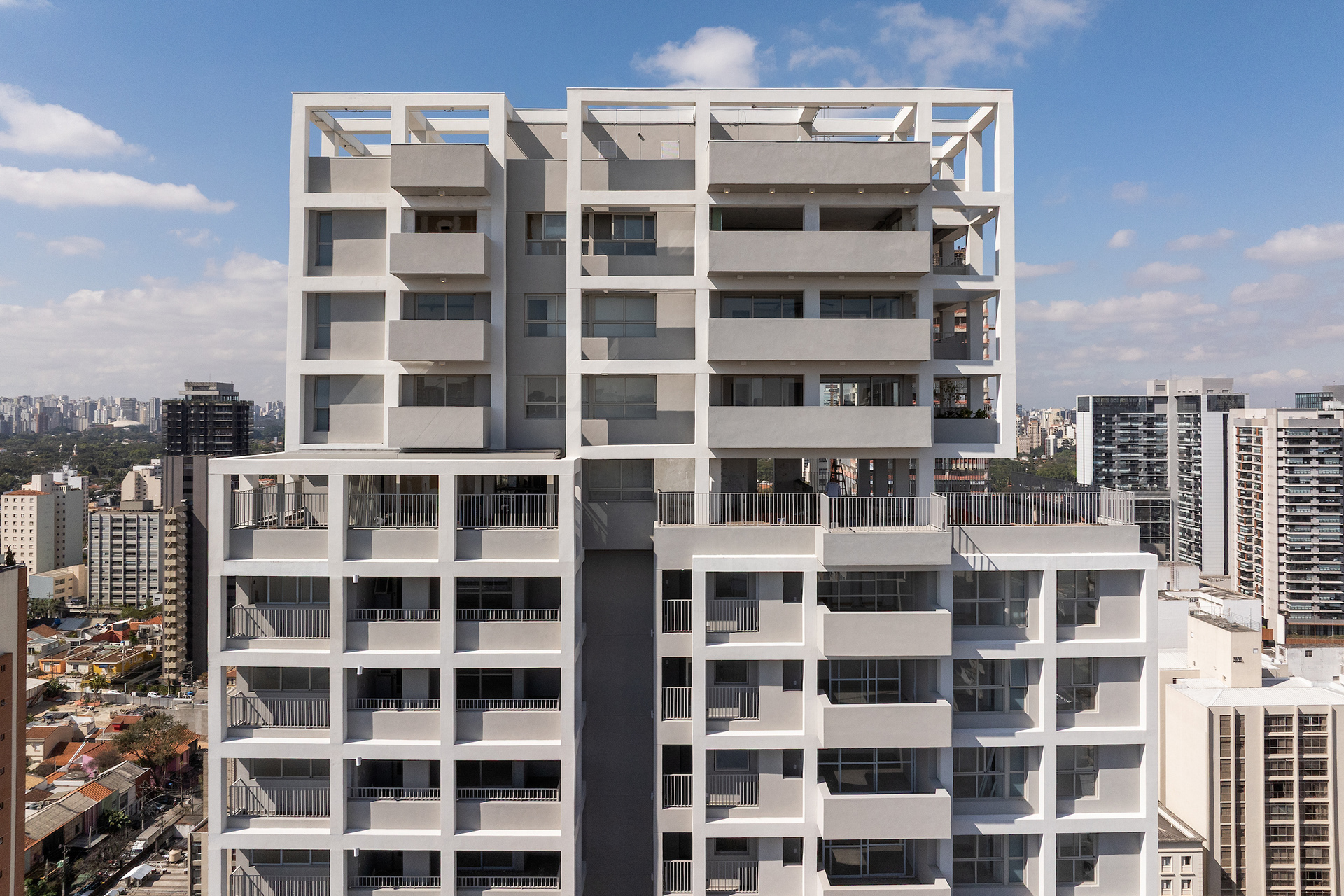 The choice of light, neutral colors—such as white and gray—reinforces the role of light and shadow in articulating the grid and the volumes. These tones also emphasize the presence of vegetation wherever possible, especially where the grid creates transitional outdoor spaces, with planters that are simultaneously within the structure and exposed to the elements. The purity of white, combined with the rigor of the structure, results in a direct, synthetic, and clear urban object, free of excess. In an urban landscape as complex as São Paulo’s, it is sometimes important to speak softly—to whisper.
