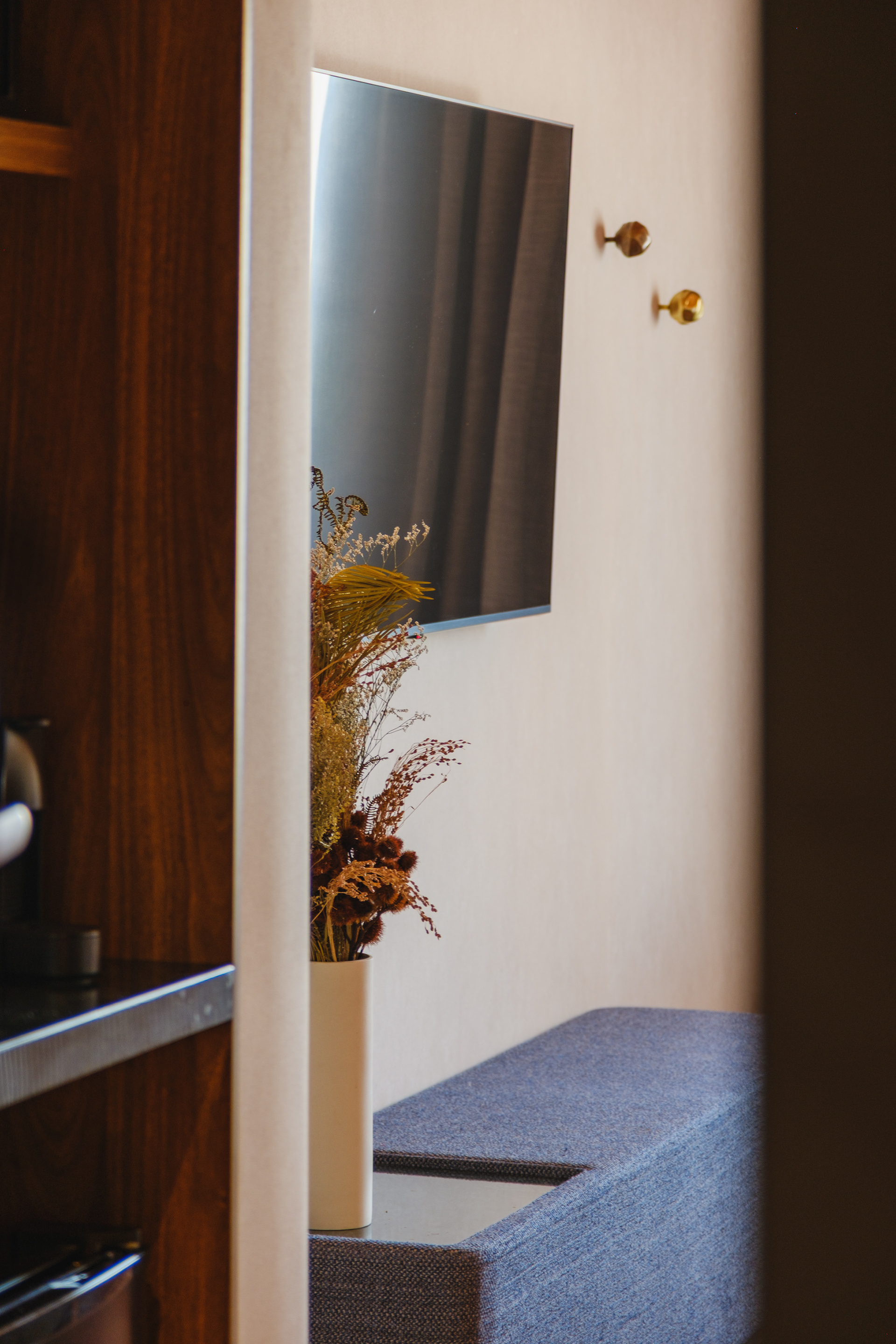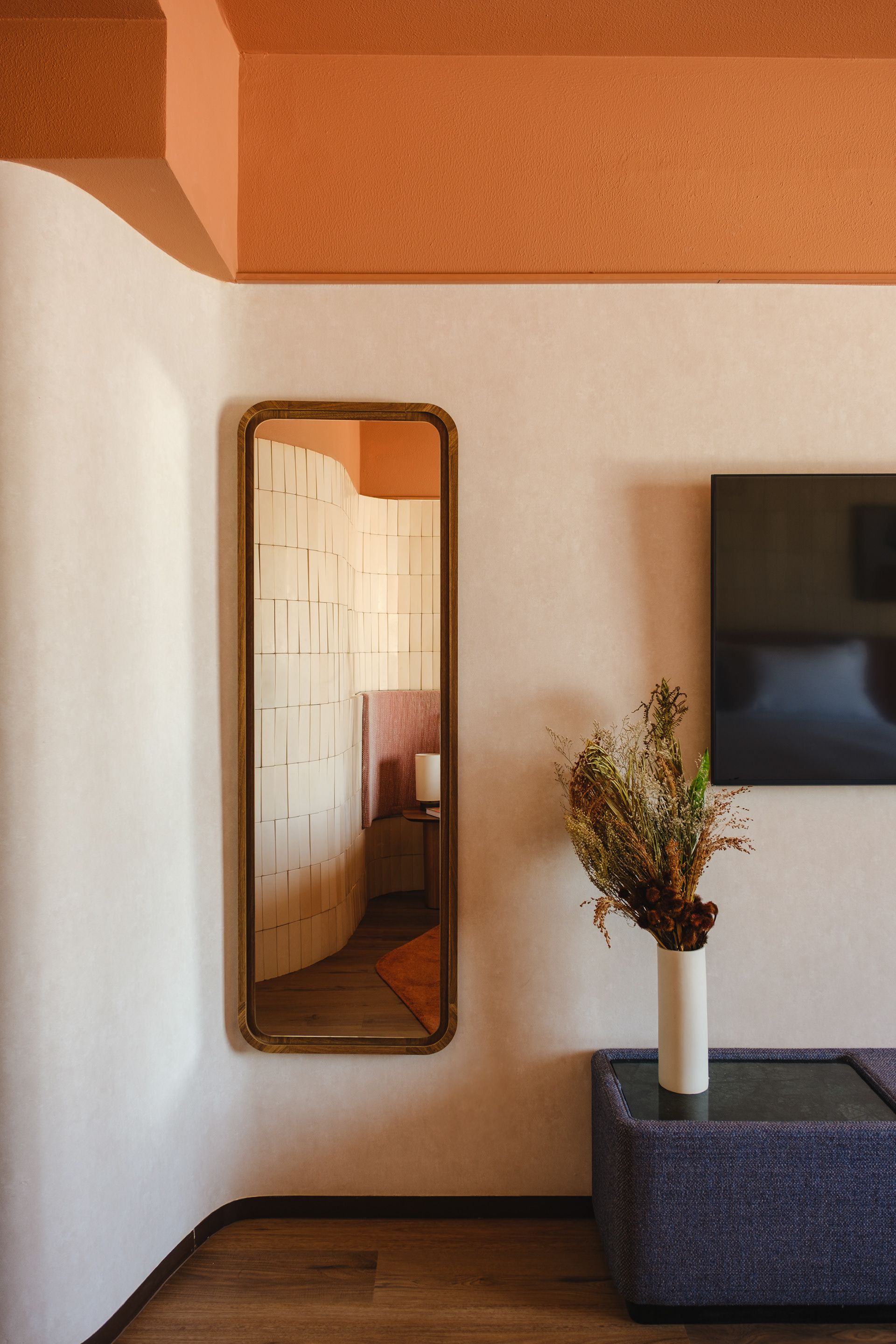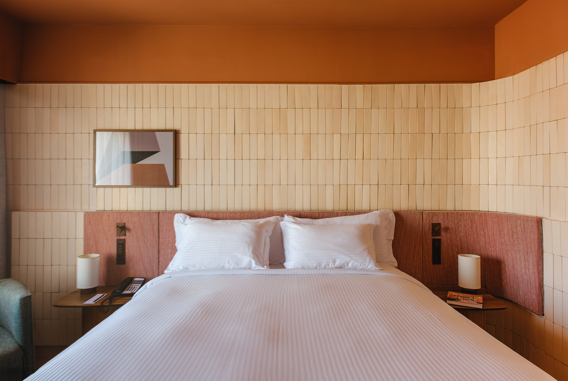 In both the rooms and the restaurant, the material palette was designed to reinforce the brand’s current identity: earthy tones, ceramic finishes, natural wood, and cozy fabrics. The predominant use of rounded forms contributes to the ergonomics and humanization of the spaces, creating environments that feel more welcoming and relaxing.