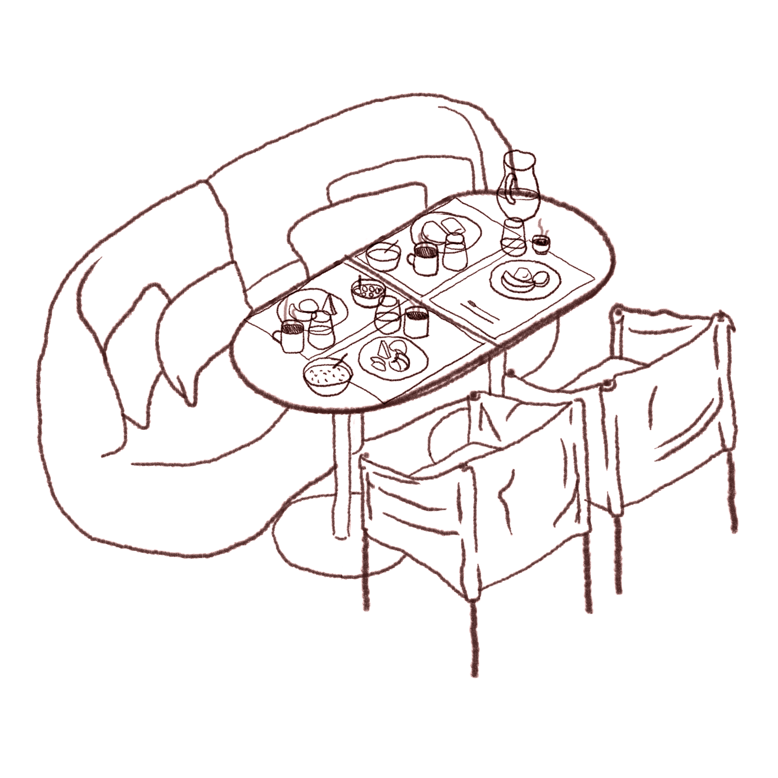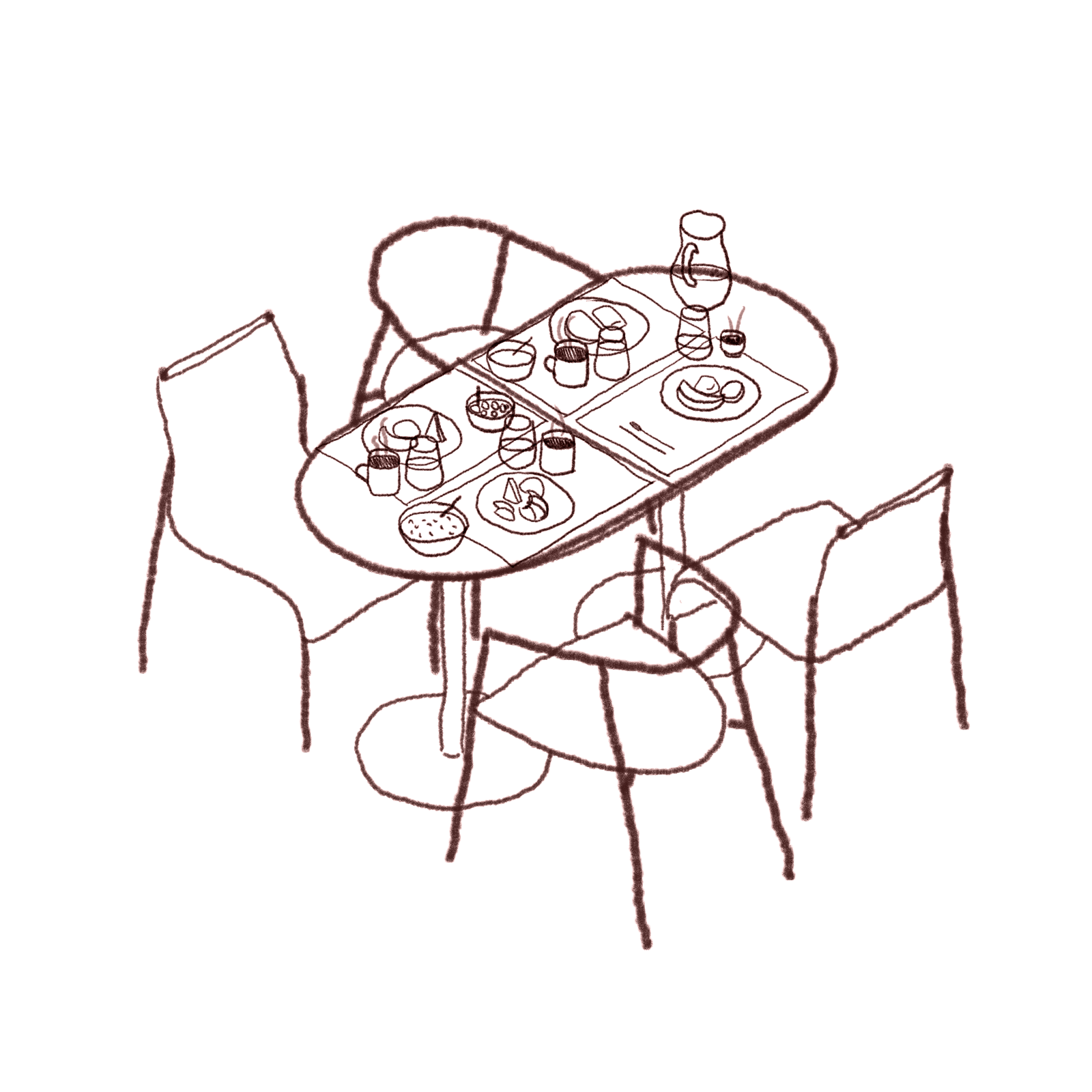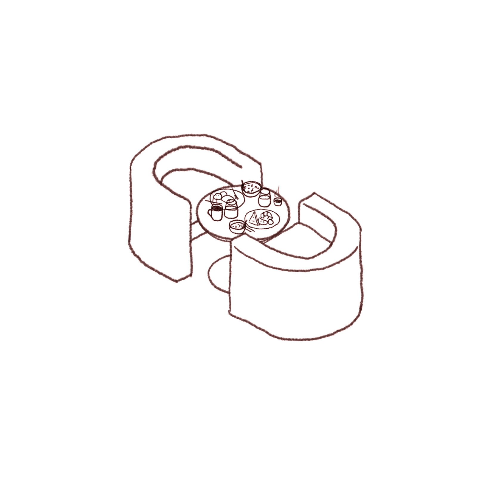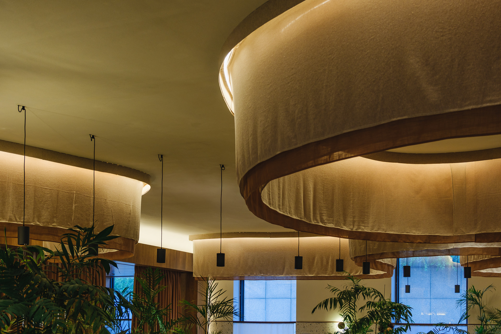 The ambiance sought to replicate the same design language used in the rooms: curved forms, organic furniture, and natural materials. Continuous curved sofas run across the entire dining hall, visually breaking the space into smaller, more intimate, and welcoming areas. This strategy ensures the environment works well both during peak hours and when occupancy is low, always maintaining a cozy atmosphere.
