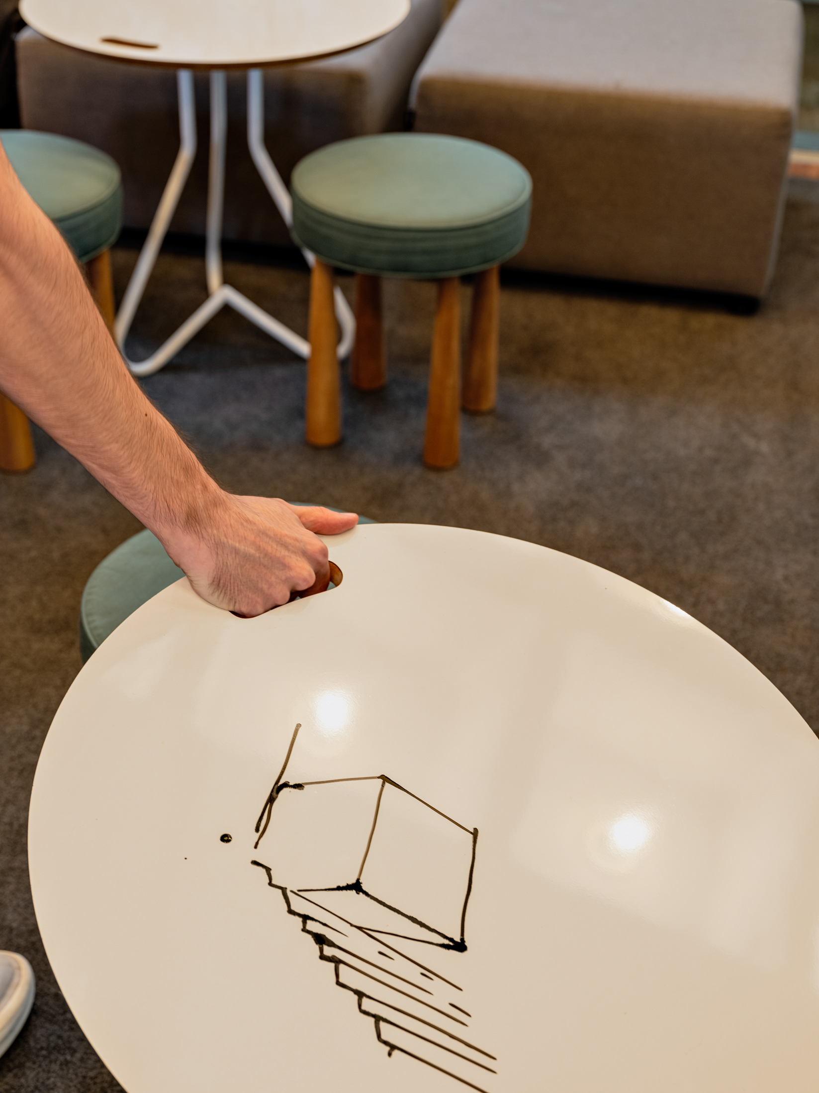 Developed for a technology company focused on app development, the Taqtile office project proposes a dynamic and fluid spatial experience, articulating different uses and user profiles within a single environment. The starting point of the design was direct collaboration with the owners, resulting in a customized, flexible solution with a strong identity.
